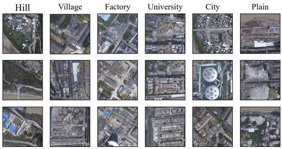 During the construction of the training set, the downward-facing camera of the drone in the digital twin platform was used to photograph the ground vertically, employing a dense sampling method for data collection. Unlike previous dataset creation methods, the flexibility in controlling drone flight within the digital twin platform allowed us to introduce an interval adjustment parameter , enabling the data collection interval to randomly vary between 20 m and 30 m. For the vertical dimension, we introduced a height adjustment parameter for each selected shooting position, allowing random selection of three different altitudes between 100 m and 200 m above sea level. The specific construction process of the VDUAV dataset is shown in Figure 5, and Table 2 details the multi-scene data collection in different regions. The multi-level dense sampling requires the model to capture fine-grained features during training and understand spatial information, enhancing the model’s ability to capture and understand complex three-dimensional spatial information.