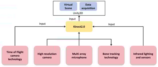 The upper and lower limb gesture recognition sensor used is Kinect 2.0. This device is a depth-sensing camera launched by Microsoft  []. It uses a series of advanced technologies to realize its functions: