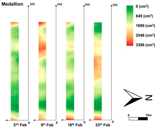 Canopy volume distribution of the Medallion variety from 2 to 23 February 2024.
