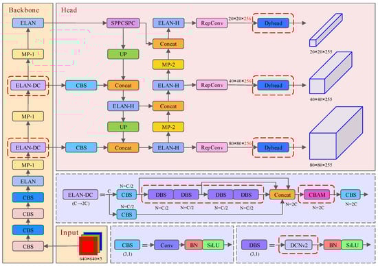 In this study, CBAM [15] and DCNv2 [16] are introduced into two of the ELAN modules of the YOLOv7 backbone network, which effectively improves the feature extraction capability of the model and the modeling capability for geometric transformations, and also replaces the DyHead [17] with the attention mechanism to improve the information mining capability of the model for visual context. The detection head with attention mechanism is also replaced to improve the information mining ability of the model for visual context, which improves the accuracy of the model while reducing the number of parameters and computation amount, and reduces the missed detection rate and false detection rate of the model.