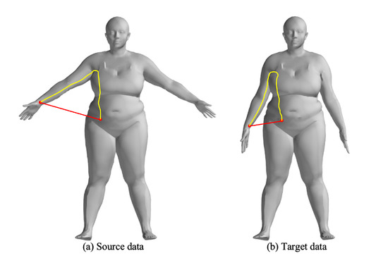 - Zhang, C.; Pujades, S.; Black, M.J.; Pons-Moll, G. Detailed, accurate, human shape estimation from clothed 3D scan sequences. In Proceedings of the IEEE Conference on Computer Vision and Pattern Recognition, Honolulu, HI, USA, 21–26 July 2017; pp. 4191–4200. [Google Scholar]