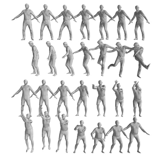 - Anguelov, D.; Srinivasan, P.; Koller, D.; Thrun, S.; Rodgers, J.; Davis, J. Scape: Shape completion and animation of people. In ACM SIGGRAPH 2005 Papers; ACM: New York, NY, USA, 2005; pp. 408–416. [Google Scholar]
