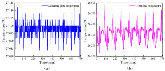 Temperature boundary data. (a) The measured data of the temperature of the installation plate. (b) The measured data of the temperature of the heat dissipation plate.