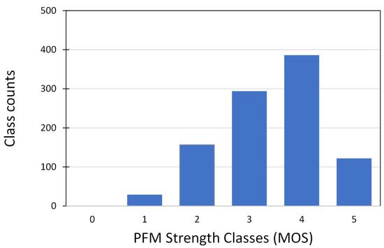 Bar chart of the class distribution of PFM strength recordings from Dataset 1.