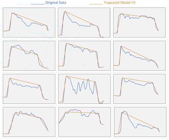 Once the coordinates of the key parameters (B, C, D, and E) are determined, the trapezoid equation is computed and a mathematical fit is created for each signal, as described in Equation (3). Using this equation, the algorithm calculates various features essential for evaluating different PFM training tasks. The following are the features along with their respective computation methods: