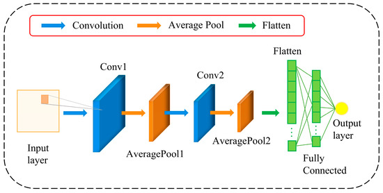 The pooling layer is used to reduce the output dimensions, decrease the number of parameters, and retain critical information. Here, average pooling is chosen to select the mean value from each region, as expressed in Equation (2):