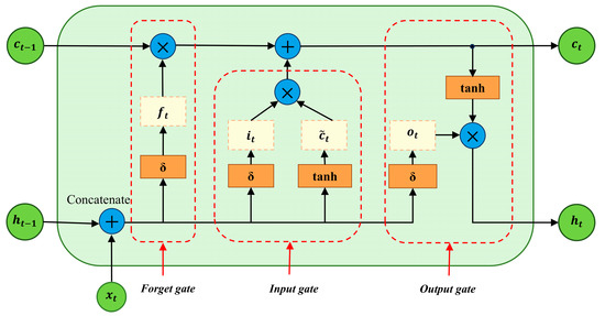LSTM is an optimized algorithm for RNN, effectively addressing the issues of memory retention and gradient vanishing in traditional RNNs. LSTM manages the retention and forgetting of information through the introduction of controllable gate mechanisms (forget gate, input gate, and output gate). The basic unit of LSTM is shown in Figure 2, where δ represents the sigmoid activation function, and tanh represents the tanh activation function. The LSTM algorithm implementation involves three steps.