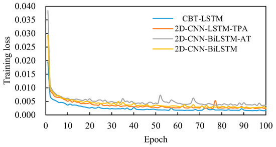 The CBT-LSTM model is compared with other predictive models using the same dataset. The effectiveness of the proposed method is evaluated using metrics such as the coefficient of determination (R2), mean absolute error (MAE), mean absolute percentage error (MAPE), and root mean square error (RMSE). An R2 value closer to 1 indicates a better fit of the model to the data, while smaller values of MAE, MAPE, and RMSE indicate better model performance. The formulas for these evaluation metrics are as follows: