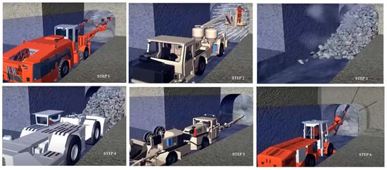 Main activities developed in a typical medium- or high-industrial-scale underground mine. Step 1: drilling; step 2: charging; step 3: blasting/ventilation; step 4: loading/ore hauling; step 5: concrete spraying; and step 6: bolting.