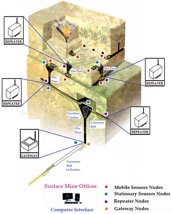 Considering the information and communication technologies (ICTs) linked to the Industry 4.0 era, for data collection and transmission, there are similarly several alternative devices that underground mine operators can use, from Ethernet networks to any number of wireless systems [16,17].