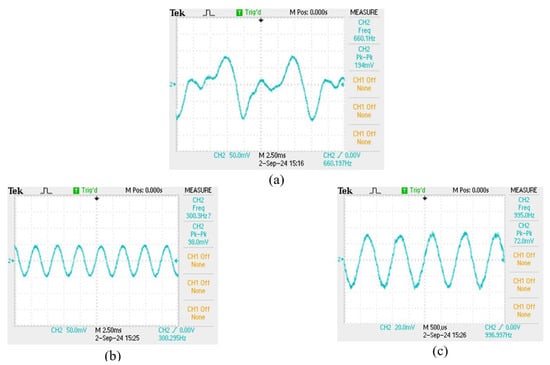 (a) 100 Hz sensing signal, (b) 300 Hz sensing signal, (c) 1000 Hz sensing signal.