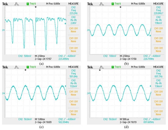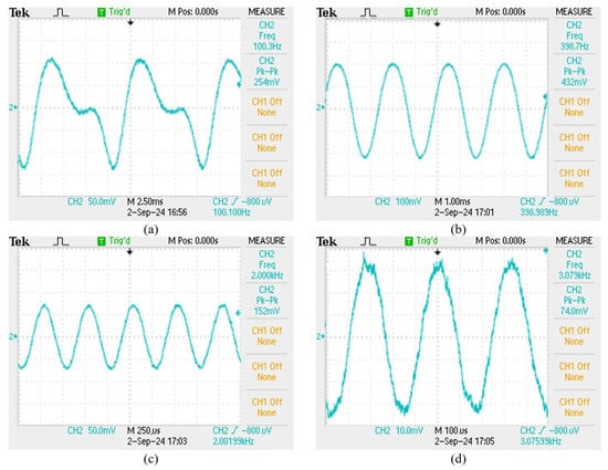 (a) 100 Hz sensing signal, (b) 400 Hz sensing signal, (c) 2000 Hz sensing signal, (d) 3100 Hz sensing signal.