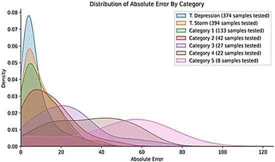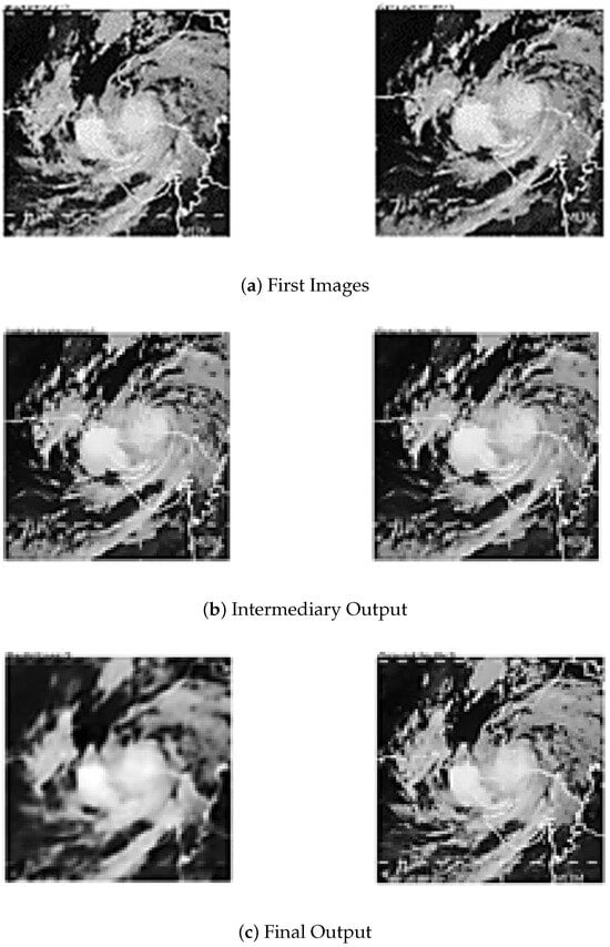 In the context of predicting typhoon movement, Wang et al. developed a CNN-based model that predicted the movement direction over the Northwestern Pacific, with a mean angle error of 27.8 degrees. They suggested that increasing the model’s complexity, such as adding convolutional and batch normalization layers, could reduce this error. However, the model’s small training dataset of 2250 images and its focus on the movement direction, and not the distance, restricted its broader application [10]. Wang et al. also introduced a two-step framework combining object detection and image processing techniques to locate TC centers in satellite infrared images. Nevertheless, the object detection model’s accuracy and circle selection in the Hough transform required further improvement [4].