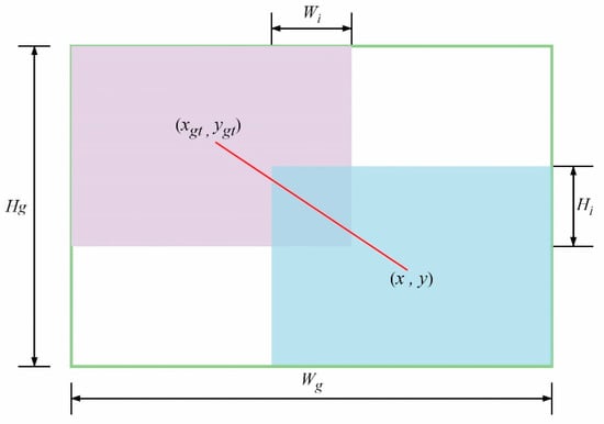 In the equation, Wg and Hg represent the width and height of the minimum external frame of the prediction box and the real box, respectively. Wi and Hi represent the width and height of the intersection area of the prediction box and the real box, while Su represents the joint area of the prediction box and the real box. A schematic diagram of the prediction box and the real box is shown in Figure 4. To prevent the creation of gradients that impede convergence, Wg and Hg are separated from the computed graph, denoted by the superscript *. This operation effectively eliminates factors that hinder convergence, avoids the introduction of new metrics such as the aspect ratio, and reduces the negative impact on the convergence of the aspect ratio function in the original CIoU loss function.