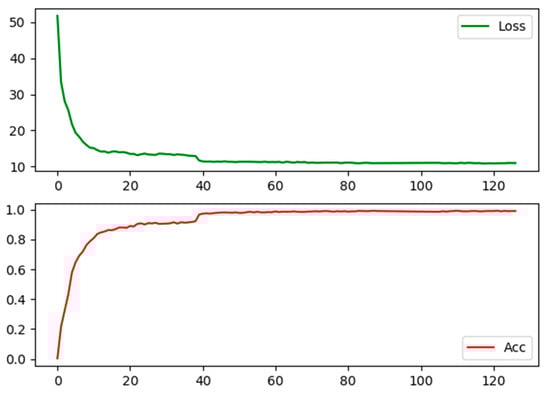 In Figure 9, we can observe the training process of the OSNet algorithm. During the initial 20 training cycles, the algorithm parameters are continuously updated, and the network layers of the OSNet quickly adapt to the vehicle recognition task. At this stage, the loss value shows a rapid decline. From the 20th to the 40th epoch, the rate of decline in the loss value gradually slows down, indicating that the model parameters can accurately identify the feature differences between different vehicles and the feature associations between the same vehicles. Similarly, in the training process reflected in Figure 9, we observe that in the first 40 training cycles, the model’s accuracy improves rapidly, approaching 0.90. Subsequently, with the steady progress of the training process, the accuracy rate gradually approaches 1, indicating that the algorithm’s performance has reached a stable state.
