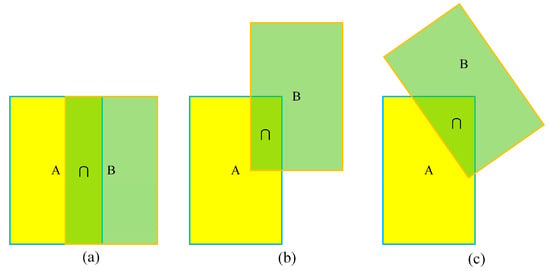 Example of prediction box overlapping with real box. (a–c) represent different intersections between the prediction box and the real box, respectively.