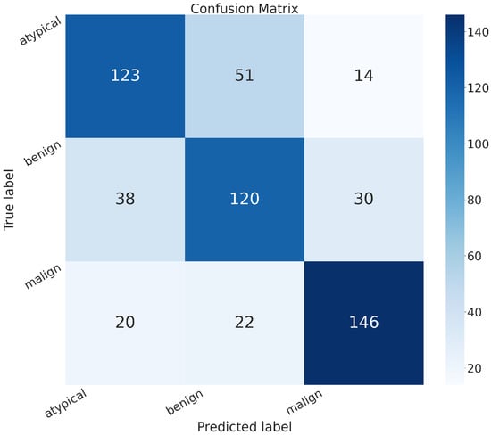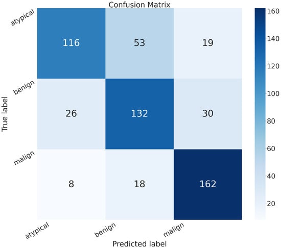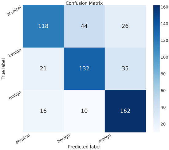 Howard et al. [] introduced MobileNet, a lightweight network that was suitable for mobile and embedded vision applications. When applied to the BRACS dataset, MobileNet provided a balance between accuracy and inference speed, achieving a classification accuracy of 73% while being computationally efficient.