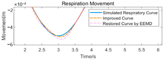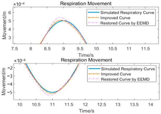 We can clearly see that the restored respiratory waveform has been modified in many places and that it closely resembles the original simulated respiratory waveform. The details are shown in Figure 15. This method does not depend on an analytical expression or a pre-set shape for waveform fitting, and has the potential to reduce model mixing.