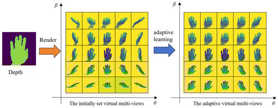 where represents the zenith and azimuth angles of the ith adaptive virtual multi-view, denotes the ith learned angle parameter matrix, and indicates the zenith and azimuth angles of the ith initialized virtual multi-view.