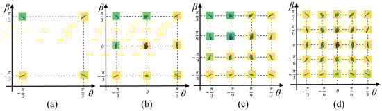Viewpoint initialization scheme. (a), (b), (c), and (d) represent the initial virtual viewpoint positions for 4, 9, 16, and 25 adaptive virtual multi-views, respectively.