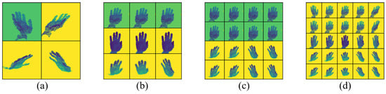 Visualization of different numbers of adapted virtual multi-views: (a), (b), (c), and (d) represent the 4, 9, 16, and 25 adapted virtual multi-views, respectively, learned from the initial virtual viewpoint positions shown in Figure 7.