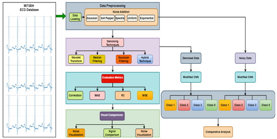 Proposed ECG denoising and classification methodology used in our research.