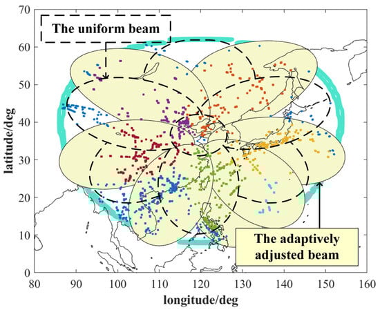 Due to the uneven distribution of aircraft on the surface, the partial beam coverage of aircraft exceeds 361, which is insufficient to meet the engineering and commercial demand for spaceborne ADS-B. Therefore, it is proposed to adaptively adjust the pointing width of the sub-beam according to the aircraft distribution: reducing the sub-beam radius in dense areas of aircraft to decrease the number of covered targets while improving beam gain, increasing the sub-beam radius in sparse areas of aircraft, and adjusting sub-beam pointing to ensure overall beam coverage.
