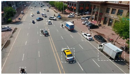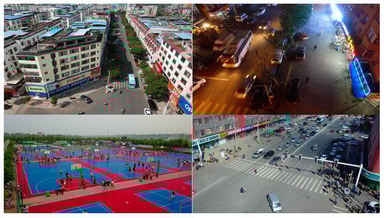 In order to ascertain the efficacy of the proposed model, experiments were conducted on the public aerial image benchmark dataset VisDrone [2]. The dataset comprises 10,209 static images captured by the drone camera. Of these, 6471 images were utilized for training purposes, 548 images for verification, and 1580 images for testing. The dataset comprises a diverse range of scenes, including urban and rural settings, highways, public squares, and stadiums, encompassing a multitude of intricate environments. At the same time, the backgrounds of the images are complex and variable, including different weather, lighting conditions, and occlusion, which enhances the robustness of the model in practical applications. The dataset contains a wide variety of target categories, including pedestrians, vehicles, bicycles, trucks, buses, motorcycles, tricycles, etc. This diversity makes the dataset highly representative and practical for real-world applications. We use VisDrone2019-DET-train as the training set and VisDrone2019-DET-test-dev as the test set. Figure 11 gives a visual example of these challenges.
