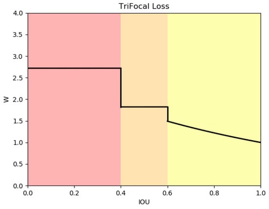 where b and bgt represent the centre points of the prediction box and the ground truth box, respectively. However, in the case of aerial image object detection, the dataset comprises a significant proportion of challenging samples and a relatively small number of simple samples. It is generally accepted that samples presenting greater difficulty are more challenging to detect. If the model is able to more effectively process these samples, the overall detection performance will be markedly enhanced. Consequently, it is essential to identify challenging samples and assign them a greater significance within the loss function, thereby prompting the model to prioritize the regression of these challenging samples during training. This paper proposes a simple and effective weighted loss function that enhances the model’s focus on high-quality examples based on the original border loss. Concurrently, in order to minimize the number of hyperparameters, we utilized IOUT as the sole adjustable hyperparameter of this method, which is categorized into three intervals. Each interval is assigned a distinct weight of attention to samples, with the objective of allocating a higher weight to challenging samples. For samples that are easily classified, we assigned them a reduced weight to minimize their contribution to the loss function. For those of medium difficulty, we allocated a moderate weight to ensure that the model effectively learns their features during training. In contrast, for difficult samples, we assigned a greater weight to encourage the model’s increased focus on these challenging instances throughout the training process.