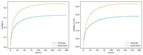 Performance comparison between ESOD-YOLO and YOLOv8n during the training phase.