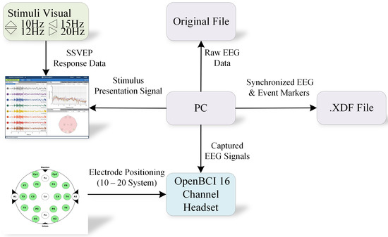 The rest of this paper is organized as follows: Section 2 reviews the SSVEP-BCI-related work in the literature, providing a comprehensive understanding of the existing knowledge. Section 3 introduces the research methods used in this study, ensuring the validity and reliability of the results. Section 4 describes the experiment design, detailing the major aspects of the experimental process applied. Section 5 evaluates the proposed system’s performance through a preliminary trial, highlighting its effectiveness. Section 6 discusses the results. Section 7 concludes this paper.