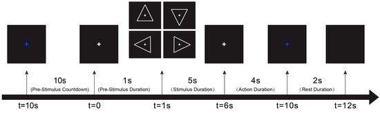 EEG data were collected from the start of the pre-stimulus duration to the end of the rest period, shown as t = 0 and t = 12 s in Figure 4.