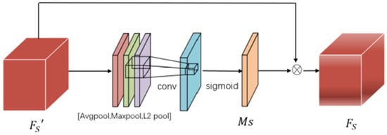 To enrich the feature description and extract useful intermediate features, was added to calculate the two-dimensional spatial information as an additional feature descriptor of CBAM, as shown in Figure 3 and Equation (4).