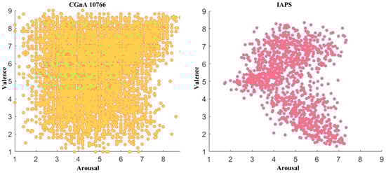 Emotion distribution of CGnA10766 and IAPS based on VA emotion space.