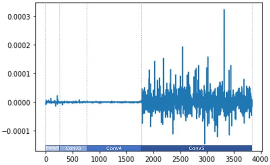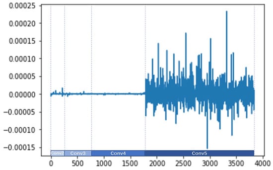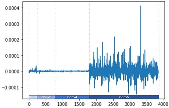 The three weight parameters of the improved attention channel , , and are obtained by Equation (11), and the dimension of the channel is 3680. The values of , , and are shown in Figure 8, Figure 9, and Figure 10, respectively. The visualization results reveal the following information: