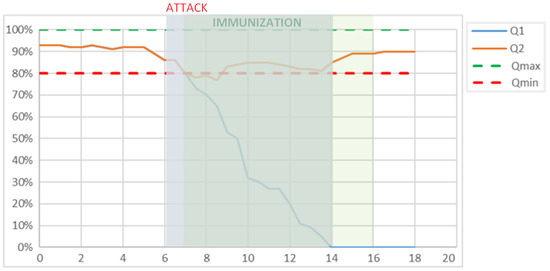 - game theory approach. It exploits the self-configurability of the reconfigurable network to help the system to maintain the target function by rebuilding the network structure. To ensure that a cyber attack does not disrupt the implementation of the target function, compromised or disabled nodes must be excluded or replaced with other nodes of similar functionality like in a game [18,40,41,42,43,44].