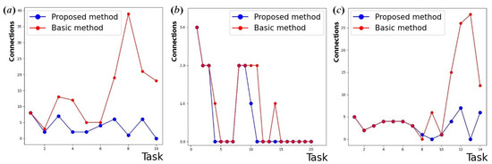 - broadcast requests (Figure 3a,d). When establishing a network, requests are used that include several requesting and requested vertices for connection in each task;