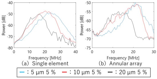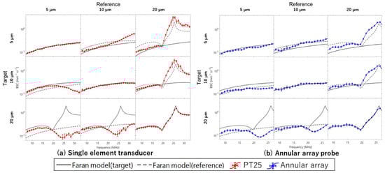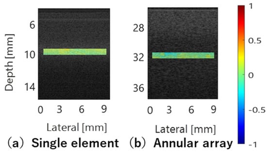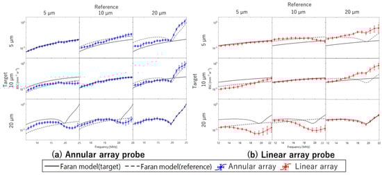 - Mizoguchi, T.; Yoshida, K.; Mamou, J.; Ketterling, J.A.; Yamaguchi, T. Improved evaluation of backscatter characteristics of soft tissue using high-frequency annular array. Jpn. J. Appl. Phys. 2020, 59, SKKE17. [Google Scholar] [CrossRef]