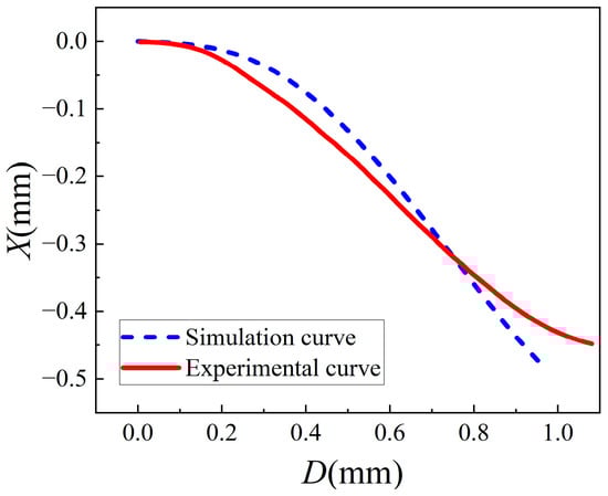 When the mirror rotates around the y-axis by an angle , the focused spot moves along the x-axis. According to the optical characteristics of the lens, as shown in Figure 1, the collimated beam reflected by the mirror is focused on the intersection of the main ray and the focal plane. The overall light spot displacement of the beam on the RP plane can be expressed by the corresponding main ray displacement . So, the relationship between and can be expressed as follows: