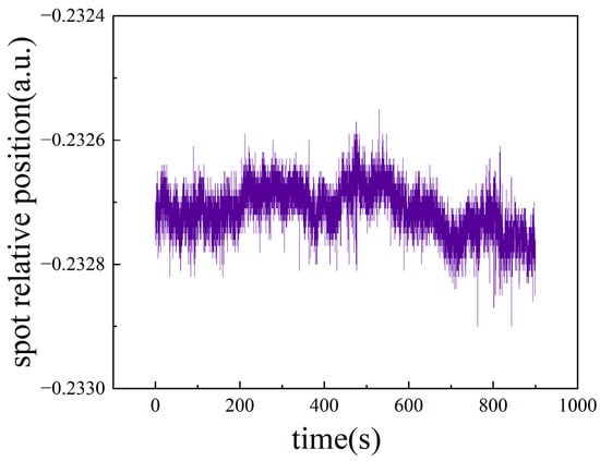As shown in Figure 7, the relative position of the spot on the PSD fluctuated between −0.2329 and −0.2325. Therefore, according to the principle of significant figures in errors theory, the output values of the experimental system can be read up to 1/10,000 bit. For the selected PSD, the width of the photosensitive region is 4 mm, so a relative position change of 0.0001 corresponds to a displacement of approximately 0.2 m.