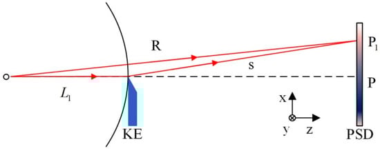 Moreover, the method proposed in this paper is based on the detection of the energy center of the light spot on the PSD; the diffraction caused by the KE needs to be considered. The straight edge diffraction of the focused Gaussian beam and the point source uniform spherical wave are analyzed in references [,], respectively. Although the analysis processes and methods are different, the results of the two studies are similar. The closer the KE is to the focus point, the wider the diffraction fringes on the receiving plane, especially when the distance approaches 0 (the waist region); as a result, the receiving region contains only the first fringes, which leads to a symmetrical distribution of the light field, and the light field distribution based on the geometric projection relation used in proposed method is no longer applicable. So, the distance between the KE and the focus is the key to the feasibility of the proposed method.