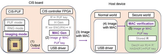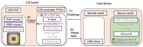 As the device initialization process, the CIS-PUF response R was stored in the secure memory of the FPGA for the host device in advance.