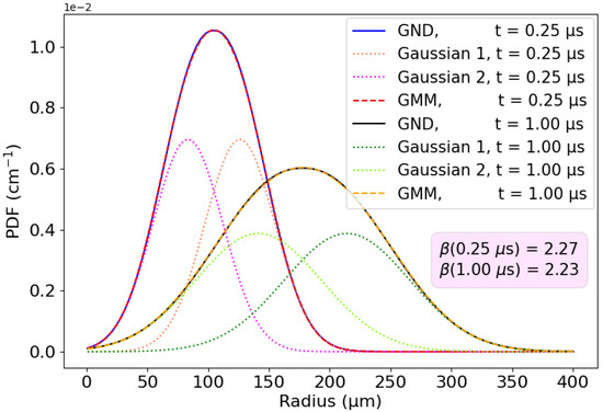 Figure 6 shows the fits of the GND probability density functions at two different times using the proposed mixture model.