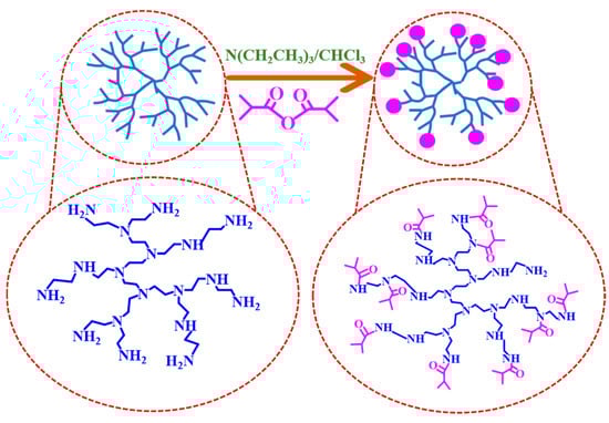 Hyperbranched polyethyleneimine with an Mn = 104 g/mol was purchased from Aldrich (Missouri, USA.). Chloroauric acid (HAuCl4) was purchased from Tianjin Jiaye Precious Metals Technology Company (Tianjin, China). Trichloromethane (CHCl3), triethylamine (C6H15N), isobutyric anhydride (C8H14O3), potassium carbonate (K2CO3, AR), and other reagents were purchased from Sinopharm Chemical Reagent Co., Ltd (Shanghai, China).