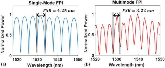 Silicon wafer FPI spectrum with (a) SMF and (b) MMF as the lead-in fiber.