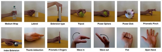 A subset of 14 gestures was selected from the available gestures based on the Activities of Daily Living (ADL) shown in Figure 1. This selection was made to balance the trade-off between number of gestures and accuracy, as the study was tailored for a real prosthetic device.