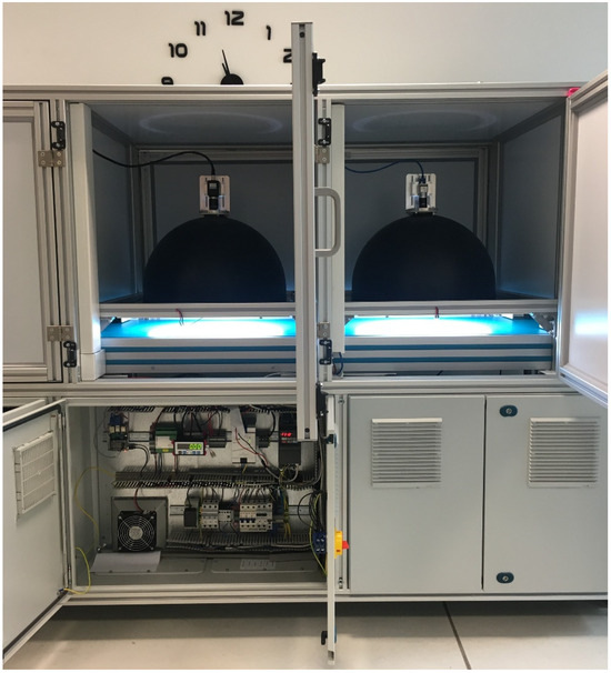 The laboratory stand used for the research is shown in Figure 2 and the prototype industrial device is presented in Figure 3. The hardware components of these test installations were adjusted to the requirements imposed on the project but can also be used as a starting point for the development of any optical control system with similar functionality but different specifications. In this section, a prototype is presented. Additionally, the issues related to its adjustment to the requirements and limitations of other applications are discussed.