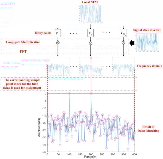 After obtaining the de-chirped echo signal, the radar system performs delay matching to replace the conventional matched filtering process. The specific process flow is illustrated in Figure 5.