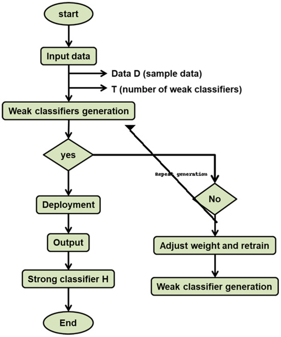 Boosting is an ensemble learning approach that consists of the following primary steps: Using the first training set, a weak classifier is trained first. The weak classifiers change the training sample distribution to ensure that the previous weak classifiers incorrectly identified in the training sets are given more consideration by the following inadequate categorization system. The aforementioned steps are repeated after the number of unreliable classifiers achieves the predetermined threshold (T). Following the ultimate weighting and concatenation of the flawed classifiers, T is the resultant strong classifier.