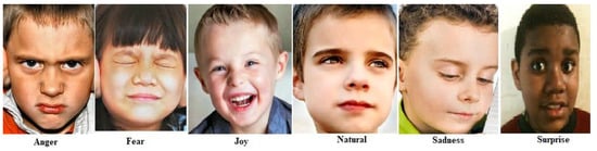 Six distinct facial emotions of children with ASD (images shown are taken from openly available autism children emotions dataset from kaggle).